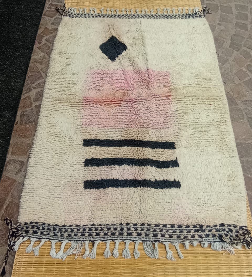 Beni Ourain Rug – Geometric Wool Design with Pink & Black Accents 117 x 165 cm